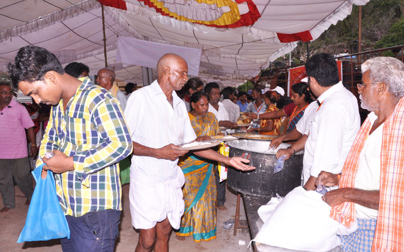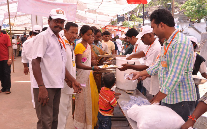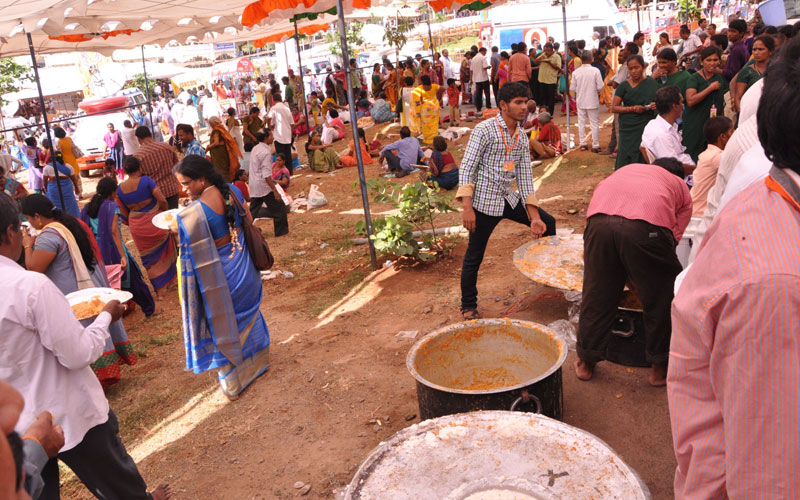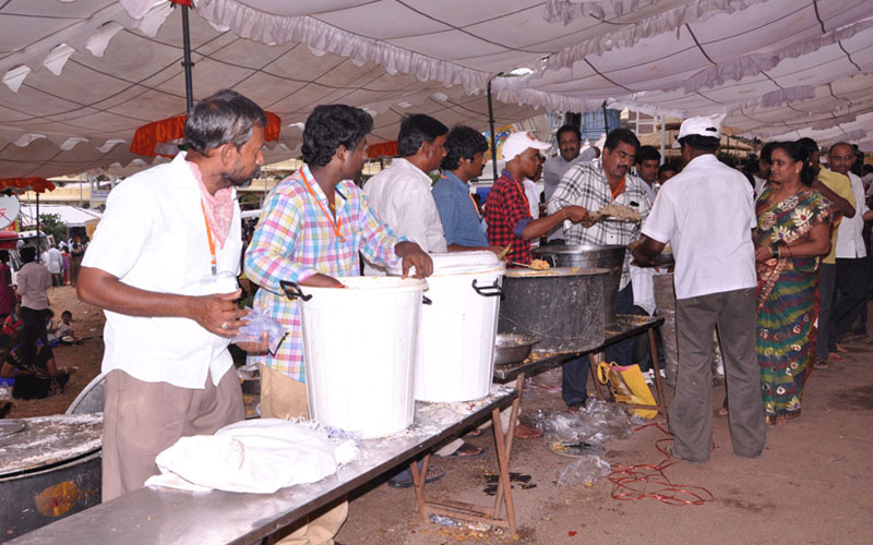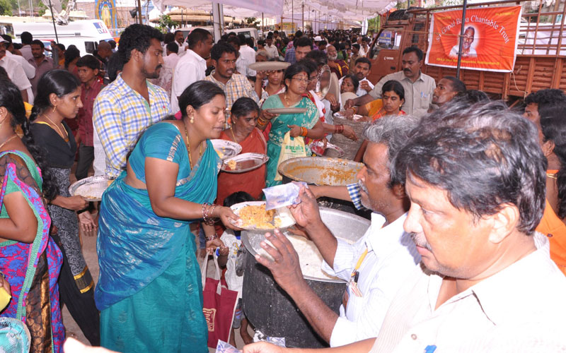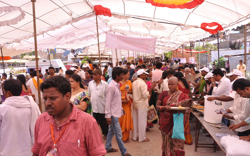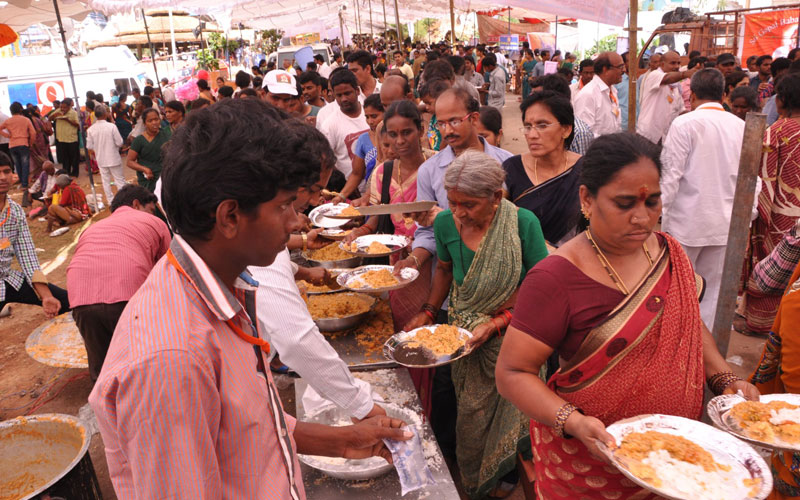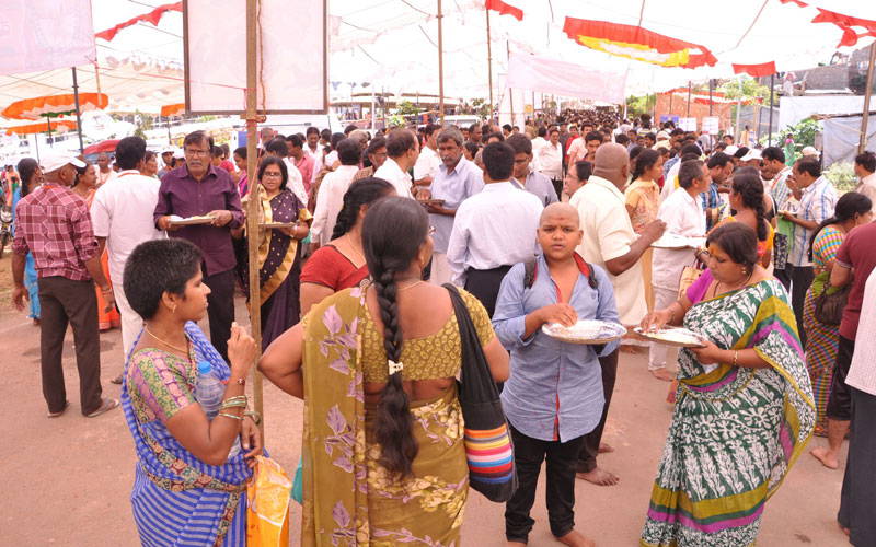 To pacify such most powerful energy it is essential to offer food to all the people in the vicinity. In Srisailam and Gokarna it was done on a large and grand scale to all the people. Through Sri Bapanarya suggested to offer food to all to pacify the most powerful energy entered into the deity of their place, the elders with arguments and counter arguments did not allow it to happen. As it is beyond our capacity to pacify such high energy and as Shripada Shrivallabha indicated that in the 33rd generation of Sri Bapanarya , Vatsavaayi, Pynda Venkatappayya, which falls during this period , God himself in the form of Shri Gopal Baba started this holy ritual of Annadana. To participate in this programme is very good opportunity and is due to so much of merit earned in past lives.