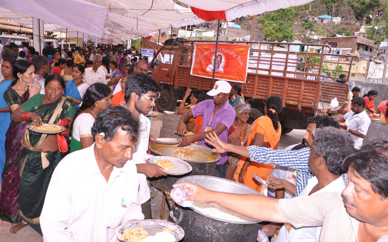 Sri Gopal Baba Maharaj has taken the responsibility personally, for the welfare of the Universe like Annadana and others, commencing from 14th November 2006(since 9 years) with out any break. Since then inspite of so many obstacles created by bad elements. These Programmes are being conducted with the divine power, assisted by only ordinary people. As Shri Gopal Baba Maharaj has to supervise these programmes personally under his leadership an Ashram was established on his own resolve, and offering some more extra activities like free education to down trodden, distribution of clothes etc, in order to spread out the programmes for the welfare of the Universe. His permanent stay here is very beneficial for us.