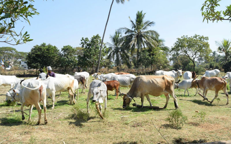 Go Samrakshan is going on in Ashram. About 70 cows of different sects are at Shri Gopal Baba Ashram. Sheds were arranged for them.